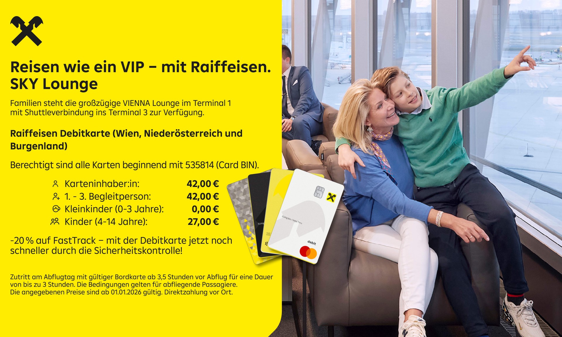 Make the most of the time before your departure or during a transfer and enjoy the comfortable SKY Lounge in Terminal 3 or the exclusive VIENNA Lounge in Terminal 1 at Vienna Airport.