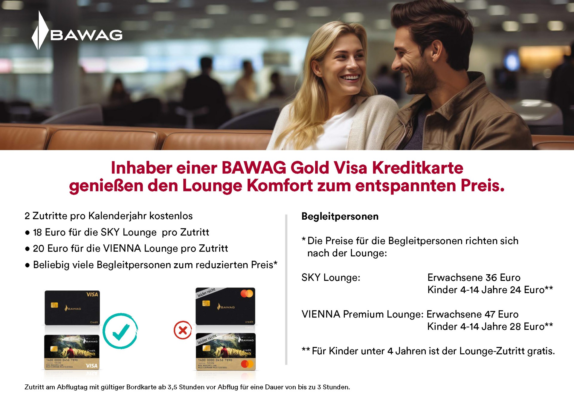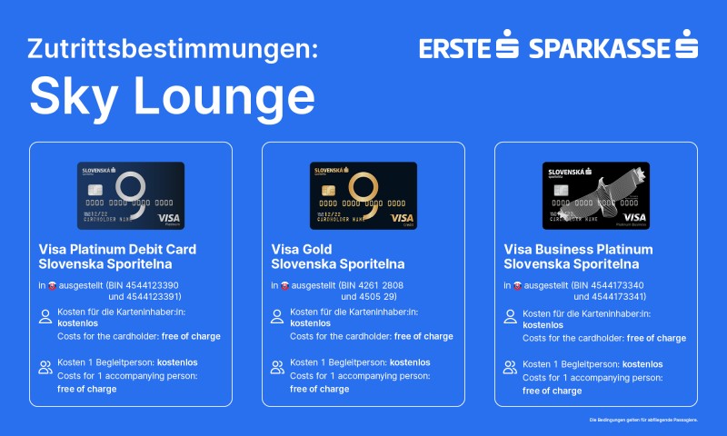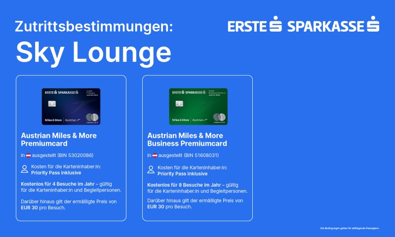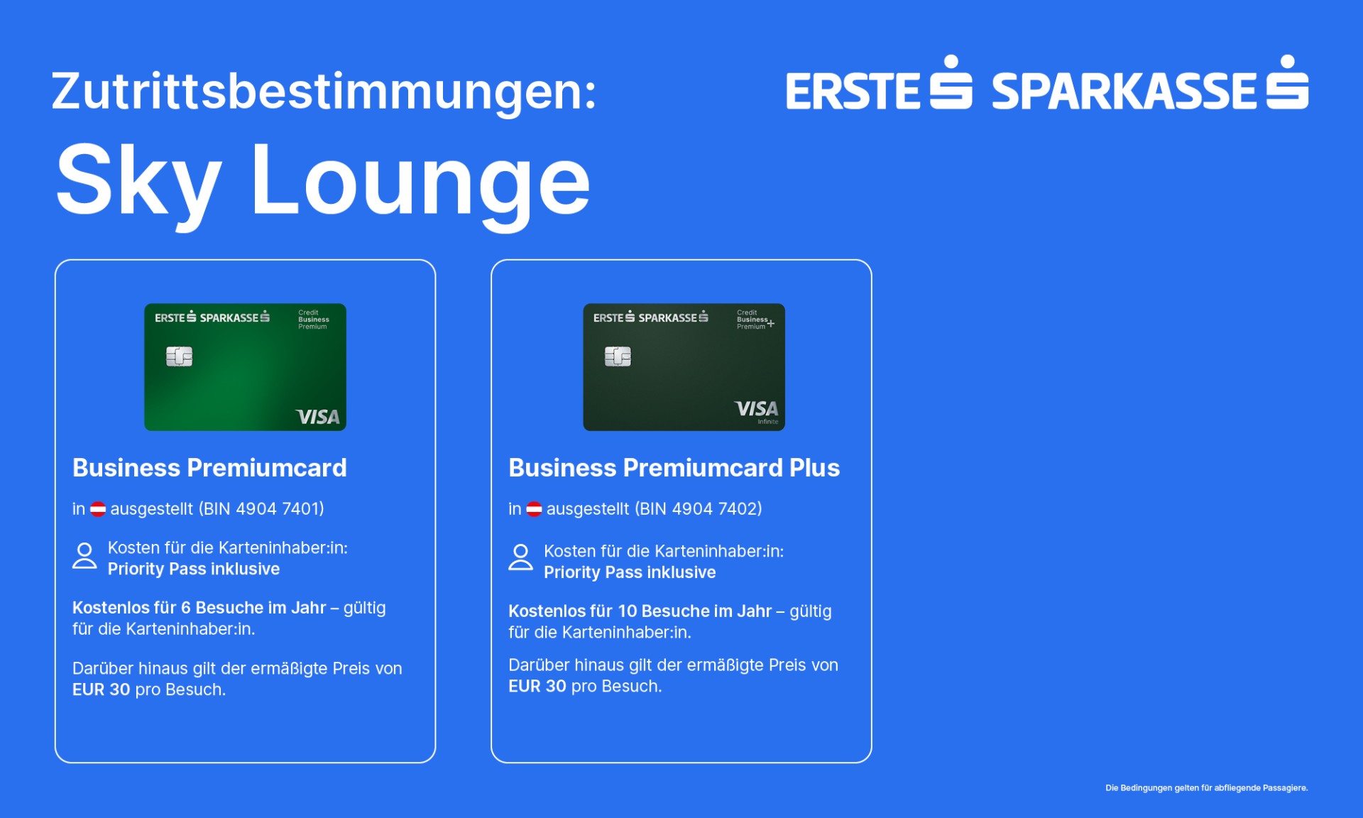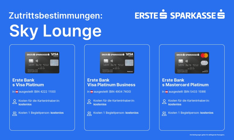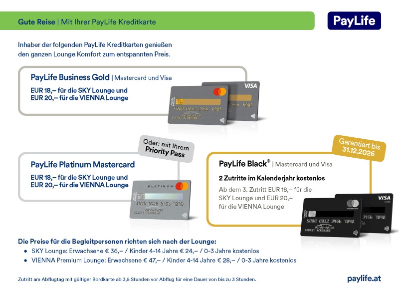 Payment by debit or credit card directly in the lounge or purchase of a lounge voucher in advance is possible.